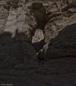 לאחר הליכה קצרה נוספת נגיע למערת הקמח שבזמן ביקורינו היתה חסומה לכניסה עקב סכנת התמוטטות [דוגמא ראינו כבר במסלול . . ] נעבור את מערת הקמח ונמשיך למעוד בערוץ, נראה מימין לנו ערוצון בלי סימון שבילים. אם יש לכם מספיק זמן, מומלץ להכנס לערוצון [הוא ללא מוצא] ולאחר הליכה של כ 400 מ' ניתן לראות משמאל מעין "שער" שנוצר בעקבות שחיקת הסלעים.