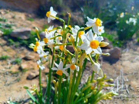 אחרי עוד ק"מ נפנה ימינה עם השביל שמתעקל ימינה שיוביל אותנו לנקיק צר בו יש פריחת נרקיסים מרהיבה בעונה.